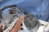 After they had him wrapped up they brought him over to officially meet Mom. |